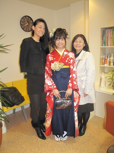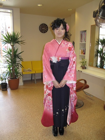 卒業式 2010 特集 Feature 2010.04.072026.03.23 チラッとですが、かわいいので載せちゃいました。ピンクの着物がとても似合ってます。 あいにくのお天気でしたが、お母さんとお姉さんと三人でとっても良い写真が撮れました。 素敵な髪飾りと帯のコサージュはお母様の手作りです。 卒業式料金表 袴着付&アップ¥9450